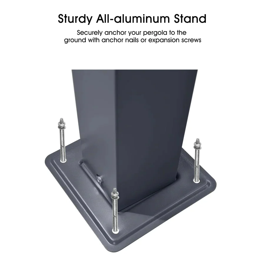 [ Full Aluminum Frame ] The canopy made of a dark gray rust-resistant powder-coated aluminum frame and 3.55'' x3.55'' pillars, enhancing durability and stability.